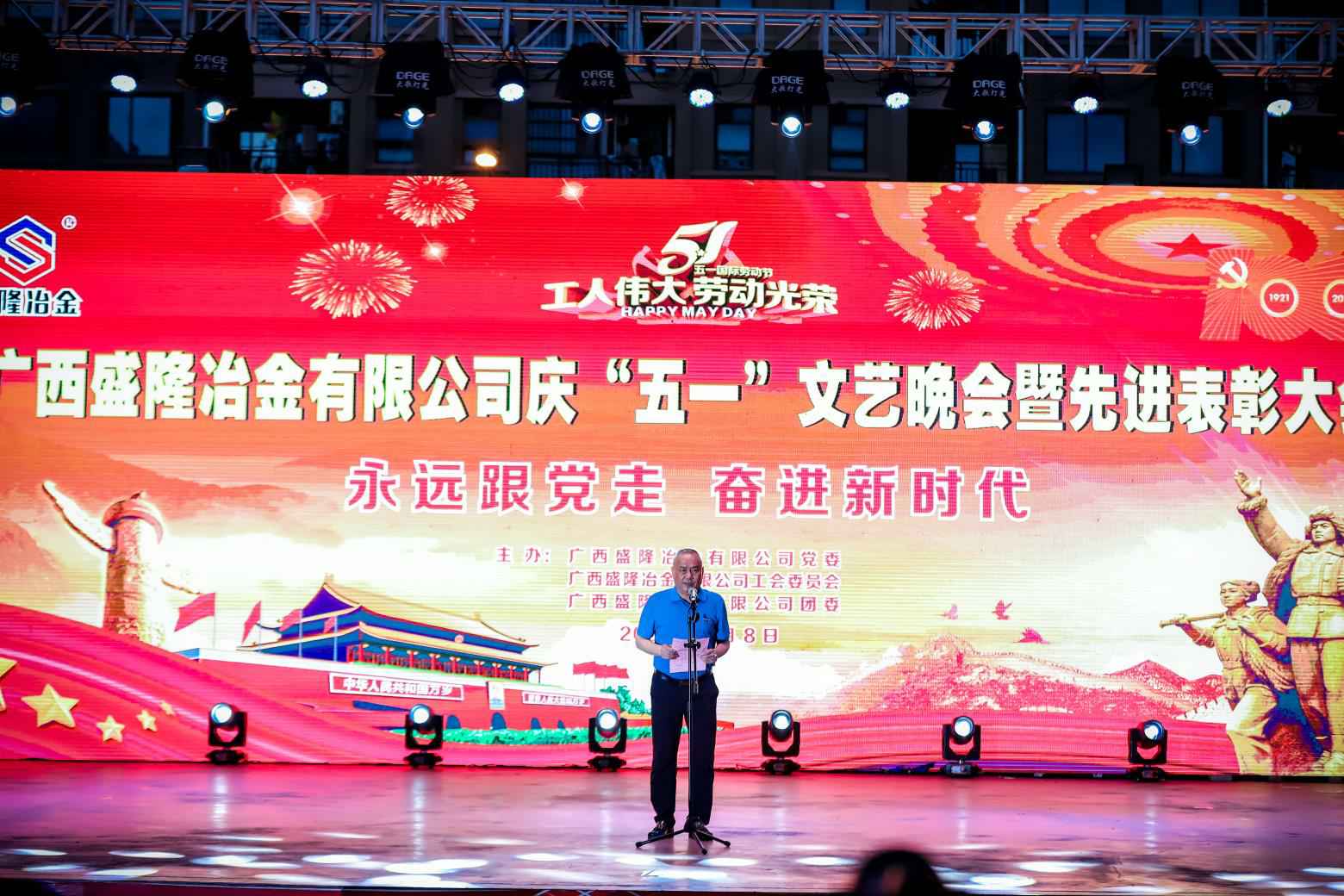 5月8日晚,乐竞官网-乐竞(中国)一站式体育服务盛隆佳园文化广场歌声嘹亮,掌声如潮。由乐竞官网-乐竞(中国)一站式体育服务党委、工会委员会、团委联合主办的“永远跟党走,奋进新时代——庆‘五一’文艺晚会暨先进表彰大会”在这里隆重举行。公司常务副总经理陈亮出席晚会并致辞,副总经理兼安环总监吕华民、副总经理兼技术中心主任刘光穆、总工程师兼规划发展部经理梁新亮、总经理助理兼广西广盛高强耐磨新材料有限公司总经理王文凯、党委常务副书记游元喜、工会主席兼总经理办公室主任刘明奇及各厂部主要领导出席。
